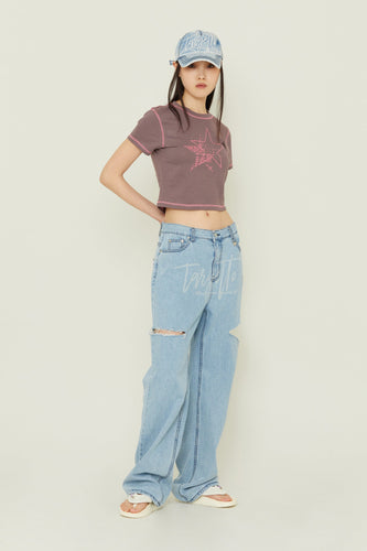 TARGETTO Side Slit Denim Pants Light Indigo (NMIXX Jiwoo's pick)